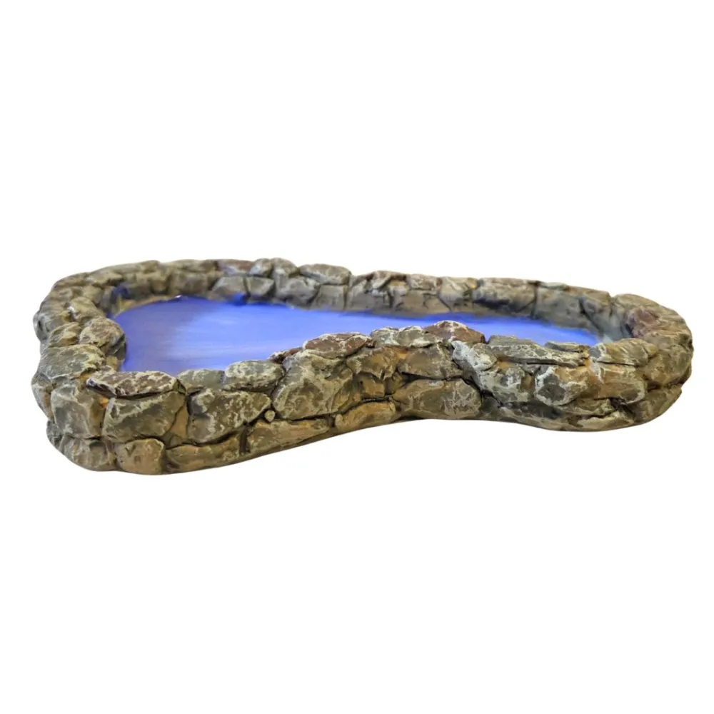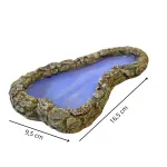 This decorative pond is made of resin and designed for Nativity scenes with figures measuring from 6 to 10 cm. Its irregular shape and faux stone edging faithfully recreate the natural appearance of a small body of water, while the inner surface, painted in softly shaded blue tones, simulates the effect of calm water. Ideal for countryside settings, pastures, villages, or peripheral areas of the Nativity scene, it can be used either as a static scenic element or combined with vegetation, animals, and background figures. A simple yet essential accessory for enhancing the landscape with greater realism and depth.
