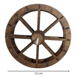 Wooden watermill wheel designed to be proportioned for 8–10 cm Nativity figures. This is a high-quality handcrafted piece, made using natural materials and finished with meticulous attention to detail by LCR Presepi by Messi Leandro. It features a complex structure with internal grid-like spokes. The wheel is crossed by a threaded metal axle, and the outer rim is reinforced with transverse paddles. It is crafted from precisely cut wood, finished in a dark tone that highlights the natural grain of the material. The surfaces are smooth and well worked, with accurate detailing in the arrangement of the spokes and planks. This miniature watermill wheel is produced with great care and excellent workmanship. The combination of wood and metal, together with its complex structure, suggests suitability for both functional and decorative models. Its elegant and precise design makes it an interesting piece for enthusiasts of historical mechanics as well as for those creating Nativity scenes, dioramas, or hydraulic engineering projects.