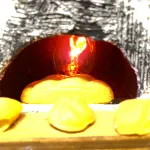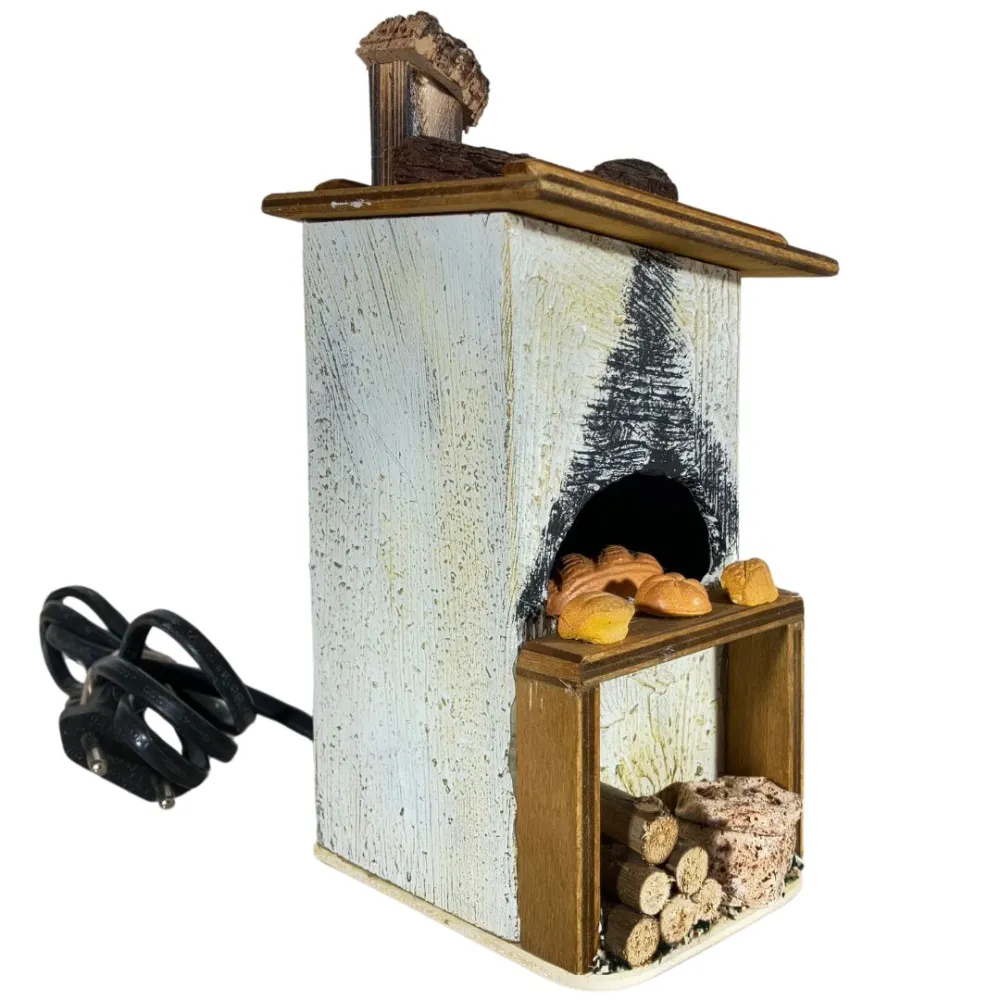 Miniature Oven with Bread and Fire-Effect Lamp – 220V for 10 cm Nativity Figures. Miniature oven with bread and fire-effect lamp, designed to be proportioned for 10 cm Nativity figures. This is a high-quality handcrafted piece, made using natural materials and finished with meticulous attention to detail by a local artisan for LCR Presepi by Messi Leandro.