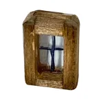 LCR PresepiWooden window with faux glass in miniature, designed to be proportionate to 5 cm Nativity figures. This high-quality handcrafted piece is made from natural materials and finished with meticulous attention to detail by LCR Presepi of Messi Leandro. It features a natural brown wooden frame with visible grain, giving it a rustic and weathered appearance. The handcrafted frame has a slightly irregular look, reminiscent of the old windows found in mountain cottages and rural village homes. The “glass” is recreated with a transparent surface crossed by a thin black cross dividing the pane into four sections — a detail typical of traditional windows. The subtle sense of depth and matte finish enhance its realism, making it perfect for Nativity scenes, historical dioramas, and rustic settings. Thanks to its compact size and finely crafted details, this miniature window fits beautifully into period recreations, adding authenticity and character to any handcrafted display.