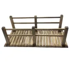 LCR PresepiWooden bridge in miniature, designed to be proportionate to 20 cm Nativity figures. This high-quality handcrafted piece is made from natural materials and finished with meticulous attention to detail by LCR Presepi of Messi Leandro. Distinguished by its rustic and realistic design, the bridge features a walkway made of parallel wooden slats, slightly irregular to simulate age and natural wear. The visible grain and neutral tones, enriched with darker shades, give the wood an authentic, timeworn appearance. Supported by sturdy vertical beams connected by horizontal crossbars, the simple yet solid railing enhances its structural balance. The aged finish recalls traditional rural construction, making this bridge perfect for rustic, medieval, or historical settings. Thanks to its versatile design and skilled craftsmanship, it’s an ideal addition to Nativity scenes and dioramas that call for a realistic, artisanal touch.