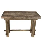 LCR PresepiWooden table in miniature, designed to be proportionate to 30 cm Nativity figures. This high-quality handcrafted piece is made from natural materials and finished with meticulous attention to detail by LCR Presepi of Messi Leandro. Entirely made of wood, it features a rustic and functional design, ideal for rural and historical settings. The tabletop is composed of parallel planks with a dark brown finish that highlights the natural wood grain and gives the piece a timeworn look. The sturdy legs, reinforced with horizontal crossbars, ensure stability and durability. The aged effect, with darker tones and worn details, adds authenticity to the reproduction. Perfect for Nativity scenes, dioramas, and rural or medieval settings, this table serves as a decorative element that brings realism and character to any display.
