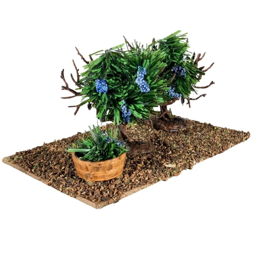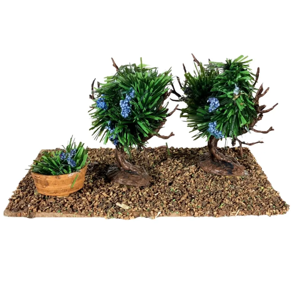 OliverBlack-grape vineyard designed to be proportionate to 8–10 cm Nativity figures. This miniature representation depicts a vineyard with clusters of black grapes, perfect for adding a realistic touch to Nativity scenes and dioramas. The vine rows feature dense foliage and carefully crafted branches that bring depth to the scene, while the textured ground adds authenticity to the composition. The basket filled with leaves and grape clusters evokes the moment of harvest, making this decorative piece ideal for creating evocative handcrafted settings.