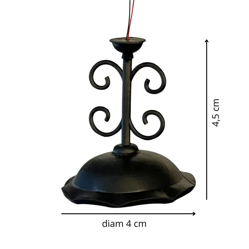 3D-printed pendant lamp designed for 25–30 cm Nativity figures. The structure is adorned with elegant scroll-shaped decorations reminiscent of wrought iron, giving it a refined and handcrafted look. The wavy-shaped lampshade houses a 12V yellow bulb that emits a warm and welcoming light, perfect for illuminating indoor settings such as inns, taverns, workshops, or Nativity houses. On this website, in the related products section, you can find compatible power supplies sold separately under product codes: EFGT01, EFTG02, and EFTG03.