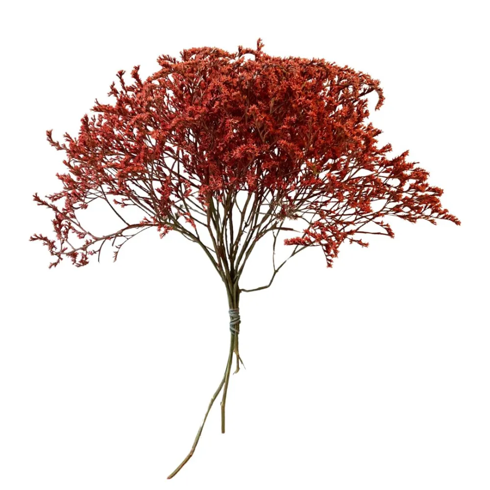 Red erba tatarica bundle. This dried plant is colored in a vibrant shade of red, perfect for adding a touch of color and originality to Nativity scenes. Ideal for representing autumnal bushes, berries, ornamental plants, or market and shop displays, it is easy to divide and shape as needed.