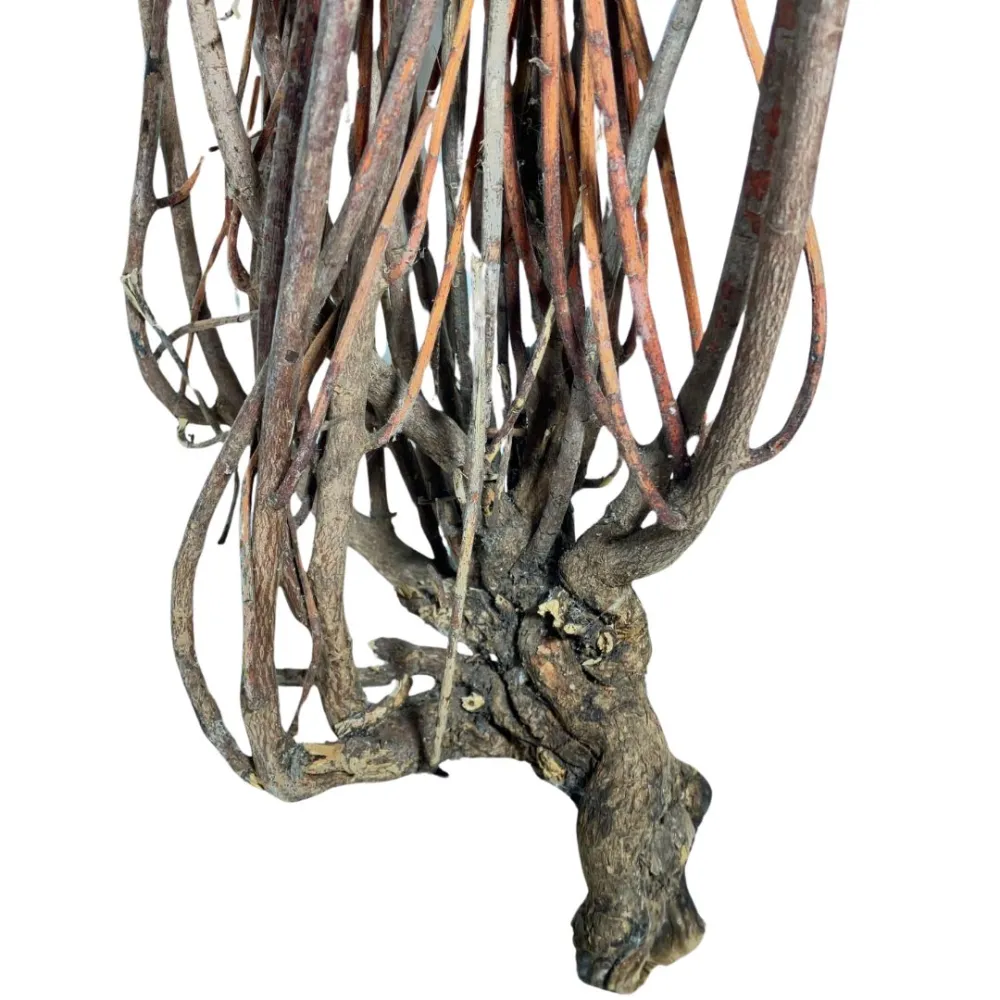 Forest ruscus, 60–65 cm tall. This piece features a natural interweaving of thin, flexible branches that gives it a wild, rustic appearance. Its coloration ranges from dark brown to lighter wood tones, with a knotted, detailed texture that reflects the authenticity of spontaneous woodland vegetation. Perfect for miniature scenes, Nativity displays, and forest-themed settings, forest ruscus is ideal for creating intricate bushes, natural hedges, or bare trees, adding realism and depth to handcrafted landscapes.