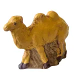 Miniature camel in terracotta for 3 cm nativity figures, hand-painted and depicted standing still, with its characteristic humps clearly defined and the simple shapes typical of nativity miniatures. This animal evokes the atmosphere of long desert journeys and is often associated with caravans and the travels of the Wise Men. Despite its very small size, the miniature maintains clearly recognizable details and is ideal for enriching travel scenes, caravans, or oriental settings within the nativity display, helping to create a more varied and evocative environment.
