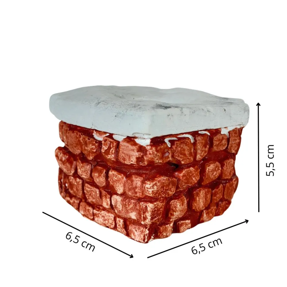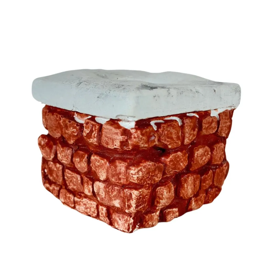 Miniature painted plaster well designed to be proportioned for 8–10 cm Nativity figures. This is a high-quality handcrafted piece, made and finished with meticulous attention to detail by a local artisan for LCR Presepi by Messi Leandro. The base is finished in red and reproduces a three-dimensional effect of carved red bricks, adding depth to the scene. The upper rim is smooth, slightly irregular, and white, with a subtly worn and aged finish that realistically recalls limestone stone or cement. At the center of the structure there is an opening that simulates the well shaft. Solid and carefully detailed, this well is a versatile and realistic decorative element, ideal for Nativity scenes, dioramas, and handcrafted projects.