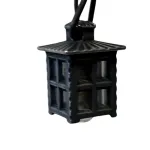 Metal lantern with 12V yellow filament bulb, designed to be proportionate to 12–15 cm Nativity figures. It features a sturdy black metal frame with transparent plexiglass panels, ideal for nighttime settings within the Nativity scene. Inside, a small bulb emits a warm glow that softly simulates candlelight. Perfect for enhancing rustic scenes, pathways, or figures on their journey.