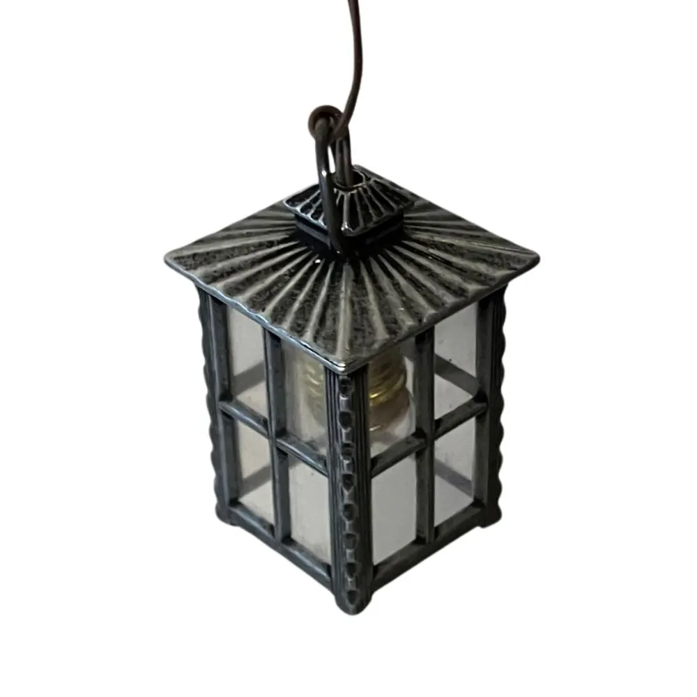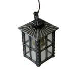 Metal lantern with 12V yellow filament bulb, designed to be proportionate to 20–25 cm Nativity figures. It features a painted metal structure with an antique-style finish and plexiglass panels that faithfully reproduce the look of real glass. The warm light emitted by the internal bulb creates an intimate and realistic atmosphere. Perfect for hanging or placing in the hands of traveler or guardian figures.