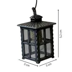 Metal lantern with 12V yellow filament bulb, designed to be proportionate to 30–35 cm Nativity figures. It features a dark metal structure with transparent plexiglass inserts, sturdy and finely detailed. Internally illuminated by a small bulb, it emits a warm light that helps create a cozy and traditional atmosphere. Suitable for a variety of settings, from stables to nighttime paths.