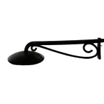 Rustic wall lamp with warm yellow light, 3 volts, 3D-printed miniature, designed to be proportionate to 15 cm Nativity figures. This wall lamp features a long, rigid horizontal arm that allows it to be fixed to a wall or other vertical structure. Two decorative curved elements — a larger spiral and a smaller scroll — evoke the charm of traditional wrought-iron lamps. At the end of the arm, a rounded, downward-angled lampshade in matte black material houses a small filament bulb that emits a soft, warm glow. Subtle handmade finish marks and light aging effects give the lamp an authentic and realistic look. This miniature lamp with integrated filament bulb is a beautifully detailed piece, perfect for creating warm and atmospheric lighting. Its refined design, curved arm, and gentle glow make it ideal for Nativity scenes, dioramas, and model settings. Compatible power supplies (sold separately): product codes EFTG02 and EFTG03.