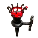 3D-Printed Wall Torch with Red Light, 12V – Suitable for 30 cm Nativity Figures This miniature 3D-printed wall torch is designed in perfect proportion to 30 cm Nativity figures. It features a circular base connected to a horizontal arm, allowing it to be mounted on a vertical surface such as a wall or scenic backdrop. The torch has an elongated, tapered body that narrows at the bottom and widens at the top, giving it an elegant and slender look. Its upper section is adorned with a translucent red ring surrounded by curved, pointed elements reminiscent of Gothic or medieval styles — evoking the lanterns and braziers once used to light streets and castles. Inside the torch is a red bulb that emits a vivid, warm glow enhanced by the translucent coating. The light spreads evenly, creating the realistic effect of a flickering flame. This wall-mounted torch with red light makes a striking scenic accessory, perfect for medieval or fantasy settings. Its decorative design, flame-like illumination, and vivid glow make it ideal for Nativity scenes and dioramas. Compatible 12V power supplies are sold separately on this site under product codes EFGT01, EFTG02, and EFTG03.