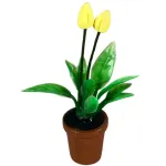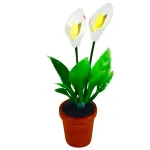 Set of six miniature vases containing flower bouquets, designed to be proportionate to 20 cm Nativity figures. The vases are made of terracotta and feature a classic conical shape, with a narrower base and a wider top opening. The interior base is filled with a material that simulates soil or substrate. The flowers are made of plastic in vibrant colors (white with yellow centers, red with yellow centers, deep red, and light yellow) and represent calla lilies and tulips. Each flower has well-defined petals with a slight curvature that adds realism, while the green leaves surrounding the stem feature subtle vein detailing. Thanks to their vivid colors and realistic details, this set is perfect for miniature decorations, Nativity scenes, dioramas, model making, and collectibles.