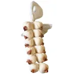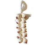 Braided garlic strands designed for 25–30 cm Nativity figures, composed of multiple white bulbs tied together and finished with twine. The light coloration, enhanced by detailed roots, gives the piece a realistic and well-defined appearance. Ideal for hanging outside homes, workshops, or rustic settings for Nativity scenes.