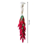 Braided string of chili peppers designed for 25–30 cm Nativity figures, composed of numerous peppers in a vibrant deep red color with green detailing at the top. The peppers are tied together with simple light-colored twine. The craftsmanship and vivid colors make this accessory highly realistic, ideal for enhancing workshops, kitchens, and rustic settings for Nativity scenes.