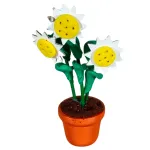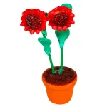 Set of sunflower vases with vibrant colors, designed to be proportionate to 20 cm Nativity figures. The vases have a classic bell shape with a slightly rounded rim and are made of a material that mimics terracotta, featuring a matte orange/brick coloration. Each vase is filled with a base that simulates soil, with a lightly textured brown surface. The flowers come in several color variations. Each sunflower has a thin, elongated stem in bright green, with long, pointed leaves arranged symmetrically along it. The vivid petal colors (yellow, red, and white) blend harmoniously to create a cheerful, decorative composition. The contrasting central details of the sunflowers (in gray, yellow, and orange) add visual depth. The simple yet well-crafted design gives the set an artisanal and playful appearance. This collection of miniature potted flowers is a versatile, colorful accessory ideal for themed decorations and craft projects. Thanks to its variety of colors and floral details, it is perfect for Nativity scenes, dioramas, or miniature decorative collections.