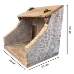Scenic polystyrene structure, designed for nativity scenes with 20 cm nativity figures, ideal as a setting for a workshop scene or for hosting the Nativity. The structure recreates the interior of a small rustic room, featuring exposed stone-effect walls, a brick-effect floor, and a wooden door flanked by a small window. The carefully crafted masonry and surface details help create a realistic environment, perfect for evoking the atmosphere of traditional village workshops. A versatile structure, ideal for displaying artisan work scenes or for creating an intimate and evocative setting for the Nativity.