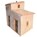 Scenic polystyrene structure, designed for nativity scenes with 20 cm nativity figures, depicting a rustic house with a side extension typical of small village settings. The building features aged plaster-effect walls, wooden doors and windows with shutters, brick-effect frames, and a traditional tiled roof with chimney. The structure is composed of two distinct volumes: a taller main section and a lower side section, creating a more dynamic and realistic architectural composition. Ideal for enriching the village area of the nativity display, it works perfectly as a home setting or as a scenic element for creating realistic views among narrow streets and small squares.