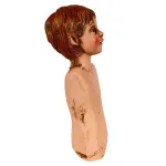 LCR PresepiLittle Boy Head – Resin, for 30 cm Nativity Figures. This resin little boy head is designed for 30 cm Nativity figures and intended for use in DIY figure creation. The model was created by local artist Michela Nibaldi, exclusively for LCR Presepi by Messi Leandro. It portrays a child delicately modeled to capture the innocence and purity typical of childhood. The face features a softly smiling expression, with rosy cheeks that give it a healthy and lively appearance. The short hair, painted in a dark brown shade, is carefully sculpted to represent a soft and natural hairstyle. The bright brown eyes add vibrancy to the face, while the gently hinted smile conveys a sense of joy and carefree innocence. This head is ideal for portraying a child figure, adding tenderness and authenticity to the Nativity scene. Its simple yet refined design allows it to blend easily into various settings, making it a piece with strong emotional impact.