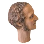 LCR PresepiResin Peasant Man Head for 30 cm Nativity Figures. This resin piece is designed for creating a DIY Nativity figure. The model was crafted by local artist Michela Nibaldi, exclusively for LCR Presepi by Messi Leandro. The head portrays a man with a serene expression and a subtle hint of a smile. The face is sculpted with realism and delicacy, featuring soft facial lines, light expression wrinkles, and slightly flushed cheeks that give the figure a sense of warmth and vitality. The complexion is light with warm, natural tones, while the light brown hair—gently wavy—is neatly combed back, enhancing the character’s calm and composed appearance. Ideal for representing adult male figures such as craftsmen, merchants, or village inhabitants, this head is perfectly suited for traditional and popular Nativity settings.