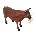 Standing ox in resin, proportioned for nativity scenes with 30 cm nativity figures. The figure features a gentle side-to-side mouth movement, slowly oscillating to reproduce the natural gesture of ruminating. The model was created by local artist Michela Nibaldi, exclusively for LCR Presepi by Messi Leandro, while the movement mechanism was personally developed by Messi Leandro. The accurate sculpting and natural color tones highlight the animal’s coat and structure, while the hay visible between the jaws enhances the realism of the scene. An ideal piece for stable settings and traditional nativity environments, adding lifelike motion and authenticity to the composition.