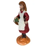 OliverLittle Girl with Basket – Oliver, 8 cm. This Nativity figure represents a village little girl, a tender and joyful character that enriches the Nativity scene with innocence and simplicity. The child wears a dark red dress with a white apron, symbolizing purity and helpfulness within the household. She has neatly arranged brown hair and a bright, smiling expression that conveys liveliness and cheer. In one hand she holds a small basket filled with vegetables, gathered to help her family or offered as a simple gift to bring to the Nativity. Her posture, with one hand resting on her hip, expresses vitality and confidence, along with the pride children feel when they want to be useful and involved. Within the Nativity scene, this little girl symbolizes the joy of childhood and the spontaneity of giving, showing that even the youngest have a place in the great event of the Nativity.