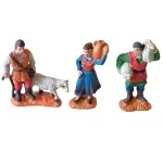 Set of 3 travelers in PVC, 5 cm, featuring three assorted characters depicted in different poses and with accessories that recall everyday village life. The set includes a figure with a sheep, a woman with an amphora, and a traveler carrying sacks on his shoulders, making it ideal for enriching the nativity scene with moments of movement and passing life. The figurines are carefully detailed and perfectly suited for completing rural and traditional settings, even in compact nativity scene.