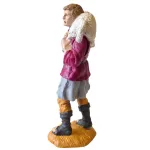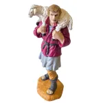PVC shepherd with sheep, 15 cm, depicted carrying a sheep on his shoulders. The figure is shown standing upright, with a natural expression and a balanced posture that recalls traditional pastoral scenes. The details of the animal and the fully painted clothing make the figurine realistic and harmonious. Ideal for completing rural settings and Nativity-related scenes within the nativity scene.