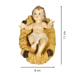 Baby Jesus with Cradle in Resin – for 25–30 cm Nativity Figures. This resin Nativity figure depicts Baby Jesus, the spiritual heart of the Nativity scene and a timeless symbol of hope, peace, and renewal. The Child rests gently on a bed of golden straw, with open arms in a gesture of welcome and blessing. His serene expression and upward gaze convey innocence, tenderness, and quiet devotion. Wrapped in a simple white cloth, the figure reflects the humility and purity of the Nativity, radiating a sense of warmth and contemplation. A touching and meaningful piece, designed to invite reflection on the profound mystery of Christmas and to serve as the focal point of any traditional Nativity setting.