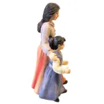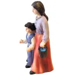 Woman with little girl, crafted in resin, suitable for nativity scenes with 10 cm nativity figures. The figure depicts a woman standing beside a little girl, holding her close in a natural and protective gesture. In her free hand, she carries a small bucket, a detail that recalls the simple daily activities of village life. The sculpting is carefully finished, with attention to the facial features and clothing of both figures, enhanced by harmonious and realistic color tones. An ideal addition for family scenes, village streets, or domestic settings within the nativity scene.