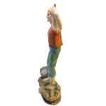 Fishmonger in resin, 30 cm. The figure depicts a fishmonger holding up a fish in one hand, with two baskets full of catch placed at his feet. The details of the face, clothing, and fish make the scene rich and well defined, ideal for enriching market stalls, shops, or selling scenes within the nativity village.