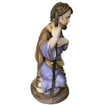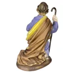 Saint Joseph in Resin – 30 cm Series. This high-quality handcrafted resin Nativity figure is carefully made and finished in every detail, reflecting the excellence of Tuscan craftsmanship. The statue depicts Saint Joseph kneeling in a posture of prayer and reflection. He is dressed in a purple tunic and a brown mantle, enriched with golden details that enhance the elegance of the figure. His left hand rests on his chest as a sign of devotion, while in his right hand he holds a pilgrim’s staff, symbolizing guidance and protection. Saint Joseph’s serene and focused expression conveys his paternal care and silent love. His humble and contemplative attitude captures the true meaning of his role in the Nativity scene as the guardian of the Holy Family. With its devout pose and warm colors, this statue adds depth, beauty, and spiritual presence to the Christmas scene.