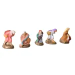 Set of 5 miniature village figures in terracotta, measuring 1.5 cm, ideal for enriching very small-scale nativity scenes or miniature displays. The set features five different characters inspired by traditional village life, each depicted with distinct poses and gestures typical of everyday scenes in a nativity village. The figures are hand-painted with lively colors and small golden details, maintaining a simple yet clearly recognizable style despite their extremely small size. Perfect for completing miniature nativity scenes, small dioramas, or decorative compositions, adding variety and a sense of life to the overall setting.
