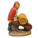Miniature man with wheelbarrow and barrel in terracotta, measuring 5 cm, hand-painted. The figurine depicts a man transporting a barrel on a wheelbarrow, a scene that recalls the daily work and activities typical of traditional nativity villages. Despite its compact size, the miniature preserves clearly recognizable details and is ideal for enriching village streets, courtyards, or work scenes within the nativity display, helping to create a more lively and realistic setting.