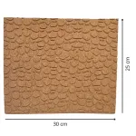 Stone-effect cork panel, 30×25 cm. The panel features an engraved finish that reproduces a stone surface, making it ideal for creating walls, flooring, and structural elements in the nativity scene. The irregular and natural texture of the cork allows for a highly realistic effect, perfect for houses, stables, alleys, and rustic settings. Easy to cut and shape, it is especially suitable for DIY projects, helping to make the scenery more detailed and authentic.