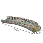 Tratto di fiume con curva a sinistra componibile in resina. Rappresenta un tratto di fiume in miniatura, con un andamento curvo e un aspetto particolarmente naturale, pensato per l'inserimento in presepi o ambientazioni paesaggistiche. Il corso del fiume scorre tra due sponde modellate a effetto roccia, con rilievi irregolari che danno profondità e movimento alla scena. Il letto del fiume è disseminato di pietre e piccoli rilievi, e presenta sfumature verdi e azzurrine che richiamano l’acqua che scorre su un fondo roccioso e ricco di muschio. La forma leggermente irregolare e curva di questo tratto consente di variare la direzione del corso d’acqua all'interno di una composizione più ampia, rendendo il paesaggio meno statico e più realistico. È un elemento perfetto da abbinare ad altri moduli come sorgenti, cascate, tratti rettilinei e laghetti, per costruire un fiume articolato e armonioso all'interno di una scena.