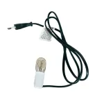 Lampada a filamento 220 volt E12 completo di portalampada e cavo. E' una soluzione perfetta per illuminazione decorativa, presepi, diorami e piccoli ambienti scenografici. Ideale per l'utilizzo con vecchie centraline giorno/notte sia in alimentazione di dissolvenza, sia in prese per carichi induttivi.