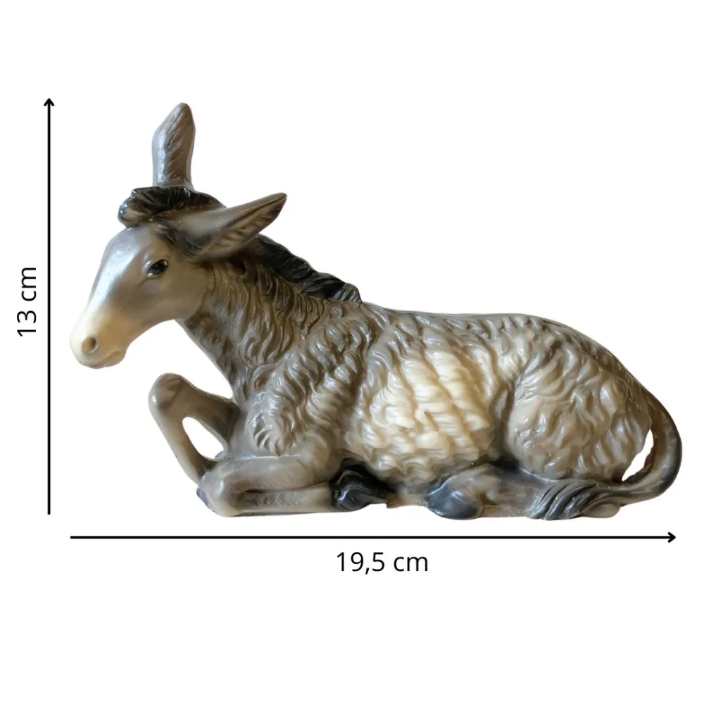 EtruriaStatua in resina serie 20 cm raffigurante l’asinello del presepe, disteso in posizione di riposo. E' un'opera artigianale di alta qualità, realizzata e curata nei minimi dettagli dall'eccellenza dell'arte toscana. La figura è realizzata con grande cura nei dettagli del manto, che presenta una texture realistica nei toni del grigio e del beige, con sfumature naturali e linee morbide che riproducono il pelo e la postura rilassata dell’animale. Simbolo di umiltà e pazienza, l’asino è uno dei protagonisti della Natività e accompagna la scena nella grotta accanto al bue e alla Sacra Famiglia.