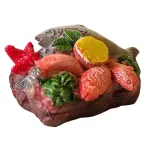 Cassetta di pesce in resina per statue da 25–30 cm, raffigurante un assortimento di pesci disposti su un fondo con elementi decorativi che richiamano foglie di insalata, tipiche dell’esposizione nei banchi di mercato. La composizione è arricchita dalla presenza di una stella marina e di uno spicchio di limone, dettagli che rendono l’insieme ancora più realistico e curato. Ideale per ambientazioni di pescherie e scorci di vita quotidiana nel presepe.