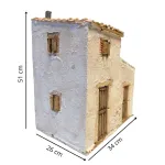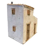 Struttura scenografica in polistirene realizzata per presepi con statue da 20 cm, raffigurante una casa rustica con volume laterale tipica dei piccoli borghi. L’edificio presenta pareti intonacate con effetto vissuto, porte e finestre con persiane in legno, cornici in finti mattoni e copertura in coppi con comignolo. La struttura è composta da due corpi distinti, uno principale più alto e uno laterale più basso, che conferiscono alla scenografia maggiore movimento architettonico. Ideale per arricchire l’ambientazione del villaggio del presepe, perfetta come abitazione o come elemento scenografico per creare scorci realistici tra vicoli e piazzette.
