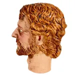 LCR PresepiVolto San Giuseppe in resina per 35 cm. Questo pezzo è progettato per essere utilizzato nella creazione di una statua fai-da-te. Il modello è stato realizzato dall'artista locale Michela Nibaldi, esclusivamente per LCR Presepi di Messi Leandro. La figura mostra il busto di un uomo con una folta barba e capelli castano chiaro. I dettagli sono scolpiti con grande realismo, catturando l'essenza di un volto maschile di carattere e forza. La barba, modellata con attenzione, si fonde armoniosamente con i capelli, mentre gli occhi blu sono dipinti con precisione, donando alla figura un'espressione vivida e penetrante. Pensato come volto per San Giuseppe, può essere però utilizzato per la creazione di qualsiasi personaggio aggiungendo un tocco speciale nel proprio presepe.