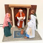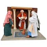 LCR PresepiScena della presentazione di Gesù al tempio in resina con statue da 30 cm, con abiti in vera stoffa, stile palestinese, in movimento. Il modello è stato creato dall'artista locale Michela Nibaldi in esclusiva per LCR Presepi di Messi Leandro. Il movimento è stato realizzato personalmente da Messi Leandro.