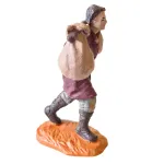 Mugnaio in PVC da 10 cm, raffigurato mentre trasporta sacchi legati a un bastone appoggiato sulle spalle. La figura è rappresentata in posizione dinamica, con passo in avanti, richiamando le attività legate al trasporto di farine e granaglie. L’abbigliamento semplice e i dettagli dipinti rendono la statua realistica e ben definita. Ideale per completare ambientazioni di mulini e scene di lavoro nel presepe.