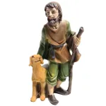 Pastore con cane realizzato in resina, adatto a presepi con statue da 11 cm. La figura raffigura un pastore in cammino, accompagnato dal suo cane fedele, raffigurato in posizione vigile al suo fianco. Il personaggio tiene in mano il bastone da pastore, elemento simbolico e funzionale che completa la scena. La modellazione è curata nei dettagli dei volti, dell’abbigliamento e del manto dell’animale, con colorazioni sobrie e naturali. Ideale per ambientazioni di pascolo, sentieri di campagna o zone collinari del presepe.