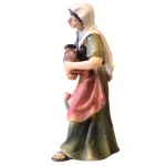 Donna con anfora e oca realizzata in resina, adatta a presepi con statue da 8 cm. La figura raffigura una donna in cammino che stringe al petto un’anfora, mentre un’oca la segue ai piedi, creando una scena domestica semplice e quotidiana. La postura è leggermente inclinata in avanti, con un’espressione serena e attenta. La lavorazione è curata nei dettagli del volto, dell’abbigliamento e dell’animale, con tonalità morbide e realistiche. Ideale per ambientazioni di villaggio, cortili o zone rurali del presepe.