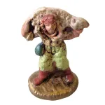 Viandante con pecora sulle spalle in miniatura realizzato in terracotta da 3 cm, dipinto a mano. La statuina raffigura un viandante in cammino mentre trasporta una pecora sulle spalle, sostenendola con entrambe le mani. L’abbigliamento semplice e il gesto del personaggio richiamano le figure di viaggiatori e pastori che attraversano sentieri e campagne nei villaggi del presepe. Nonostante le dimensioni molto ridotte, la miniatura presenta dettagli ben riconoscibili ed è ideale per arricchire sentieri, strade o scene pastorali nel presepe, contribuendo a rendere l’ambientazione più dinamica e realistica.