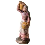 Donna con anfore in miniatura realizzata in terracotta da 3 cm, dipinta a mano. La statuina raffigura una donna mentre trasporta un’anfora sulla testa, sostenendola con una mano, mentre nell’altra tiene una seconda anfora più piccola. La scena richiama le attività quotidiane dei villaggi, quando le donne si recavano alle fontane o ai pozzi per raccogliere l’acqua. Nonostante le dimensioni molto ridotte, la miniatura conserva dettagli ben riconoscibili ed è ideale per arricchire scene con fontane, pozzi o strade del presepe, contribuendo a rendere l’ambientazione più realistica e ricca di vita quotidiana.