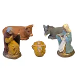 Natività in miniatura da 5 cm realizzata in terracotta, dipinta a mano. Il set comprende le figure principali della scena della nascita: Gesù Bambino nella mangiatoia, la Madonna, San Giuseppe, il bue e l’asinello. Le statuine raffigurano il momento della Natività con i personaggi raccolti attorno alla mangiatoia, secondo la tradizione dei presepi. Nonostante le dimensioni ridotte, le miniature conservano forme semplici ma ben riconoscibili, ideali per completare la capanna o il centro della scena del presepe, contribuendo a creare un’ambientazione suggestiva e ricca di significato.
