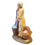 Lavandaia in miniatura da 5 cm realizzata in terracotta, dipinta a mano. La statuina raffigura una lavandaia mentre lava i panni in una tinozza colma d’acqua, con accanto il cesto della biancheria. Questa scena richiama uno dei mestieri tradizionali più presenti nei villaggi del presepe, rappresentando un momento di vita quotidiana legato alle attività domestiche. Nonostante le dimensioni ridotte, la miniatura conserva dettagli ben riconoscibili ed è ideale per arricchire ambientazioni di cortili, fontane o zone di lavoro nel presepe, rendendo il villaggio più realistico e animato.